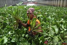 6. Indikator keberhasilan dapat dihitung bila ada 1.000 petak Keramba jaring apung ikan koan dengan pakan eceng gondok dalam satu periode pemeliharaan mengurangi sekitar 120 ha luas tutupan eceng gondok. Bila pemanfaatan eceng gondok digunakan juga untuk kerajinan dan biogas, sehingga yang digunakan untuk pakan hanya daunnya berarti 10 % bagian dari seluruh pohon, maka dengan jumlah KJA 1.000 petak dapat mengurangi 1.200 ha.