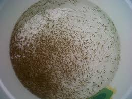 a. Ditebarkan keseluruh permukaan dasar kolam ketika kolam dialiri sekitar 10cm atau;